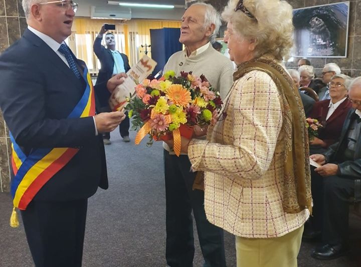 Primarul Ion Lungu a oferit celor care au împlinit 50 de ani de căsătorie flori, diplome și premii în bani. Edilul a ciocnit un pahar de șampanie împreună cu aceștia, a purtat discuții și a făcut fotografii.