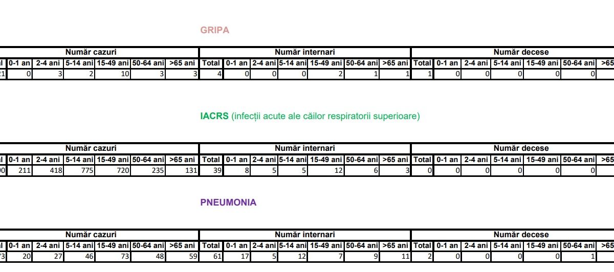 Săptămâna trecută s-au înregistrat 24 de cazuri de gripă diagnosticate clinic, dintre care 21 au fost spitalizate.