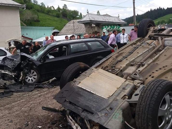 Trei persoane au fost rănite după ce un șofer băut a făcut o depășire neregulamentară.Un tânăr de 23 de ani, din satul Ciumârna, comuna Vatra Moldoviței, în timp ce conducea autoturismul marca Audi, la un moment dat s-a angajat în efectuarea unei manevre neregulamentare de depășire, intrând în coliziune stânga față cu autoturismul marca Opel, condus regulamentar din sens opus de către un bărbat de 26 ani din Todirești, pe care l-a proiectat pe cupola. Ulterior, autovehiculul condus de către tânărul de 23 de ani a fost proiectat cu partea dreapta față într-un autoturism, care se afla parcat regulamentar pe partea dreaptă a sensului său de deplasare.În urma producerii accidentului a rezultat rănirea conducătorilor auto și a unei tinere de 26 de ani, din comuna Todirești, care se afla în autoturismul condus de bărbatul de 26 de ani.Victimele au fost preluate de echipajele medicale și transportate la Spitalul Municipal Câmpulung Moldovenesc.