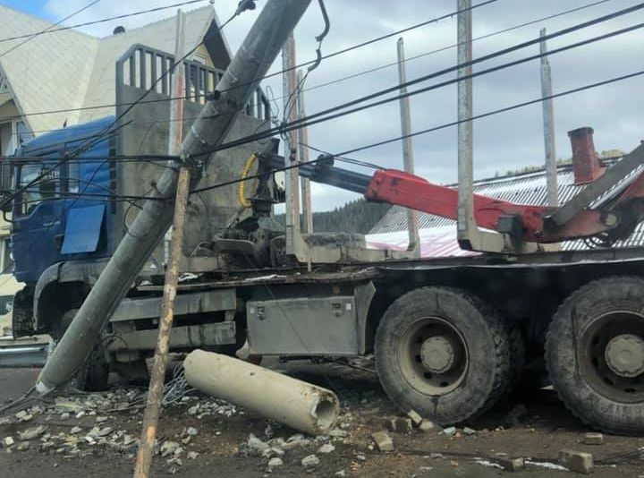 Șoferul unui camion a pierdut controlul asupra direcției de mers și a ieșit de pe partea carosabilă. În drumul său, camionul a rupt un parapet metalic, un stâlp din beton și un semn de circulație. Potrivit martorilor, în urma accidentului nu s-au înregistrat victime.