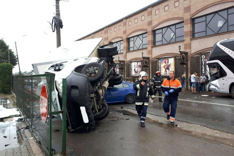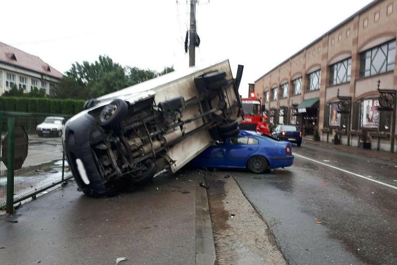 Accident rutier la Câmpulung Moldovenesc. O furgonetă a fost proiectată peste un autoturism VIDEO