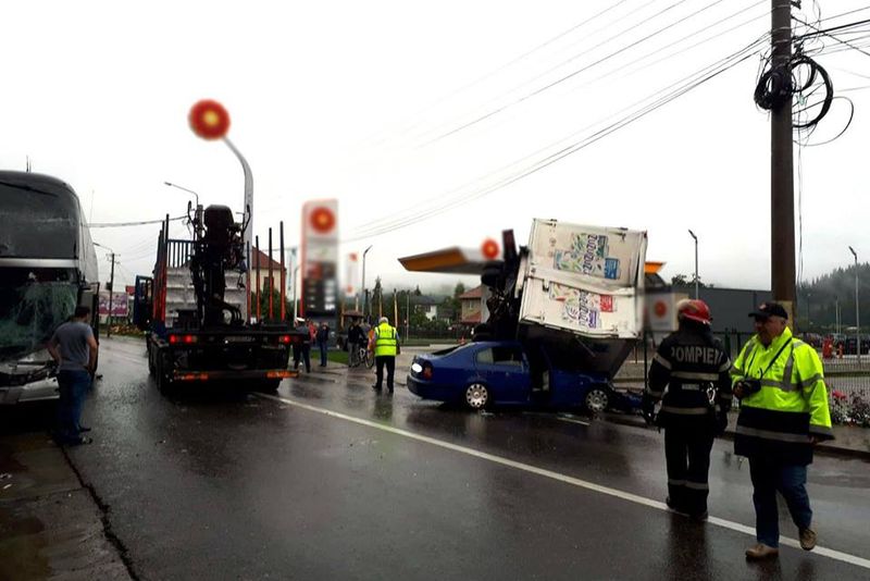 Accident rutier cu cinci victime, luni dimineață, pe raza orașului Câmpulung Moldovenesc. Un autocar, un autoturism și o camionetă au fost implicate în accident. Potrivit polițiștilor, șoferul autocarului, un bucureștean de 35 de ani, nu a păstrat distanța regulamentară în mers față de o furgonetă care rula în fața lui, condusă de un șofer de 29 de ani din Câmpulung Moldovenesc, și a intrat în coliziune cu aceasta. În urma impactului, furgoneta a intrat pe contrasens și a lovit un autoturism care circula regulamentar, condus de un sucevean de 42 de ani. În urma evenimentului rutier furgoneta a fost proiectată peste autoturism. Cinci persoane au fost rănite. La fața locului au ajuns mai multe echipaje medicale și victimele au fost transportate la spital. Circulația în zona s-a desfășurat alternativ pe un singur sens de mers. Cei trei conducători auto au fost testați cu aparatul etilotest, rezultatele fiind negative.