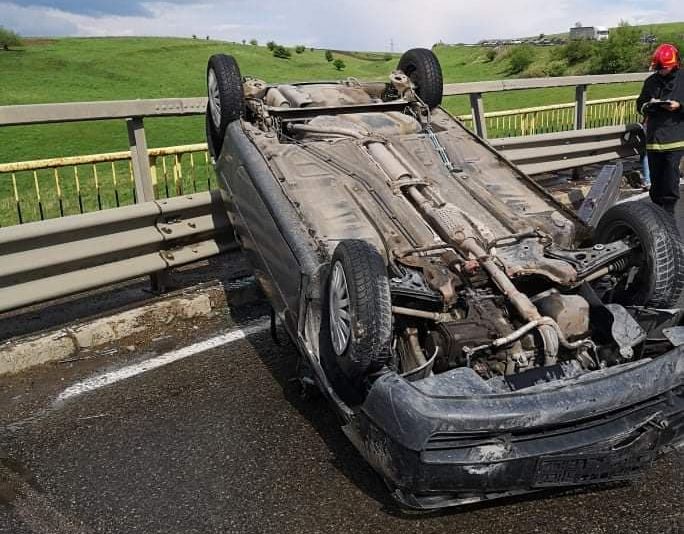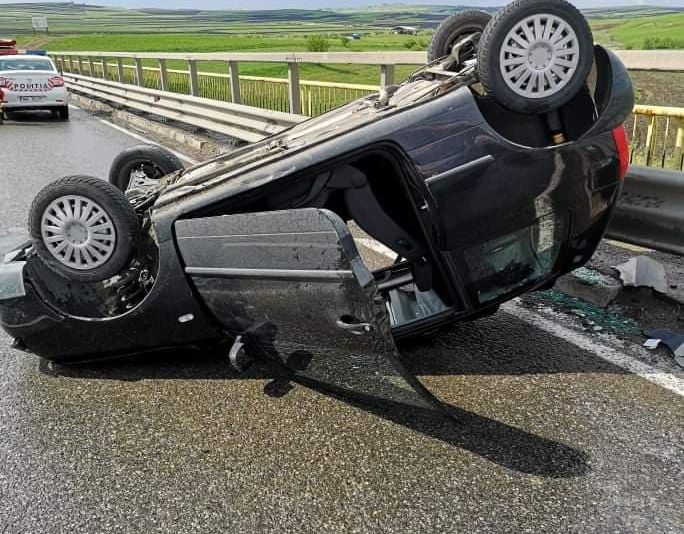 Un bărbat de 28 de ani a pierdut controlul asupra volanului și s-a răsturnat cu autoturismul pe carosabil. Acesta se afla singur în vehicul.