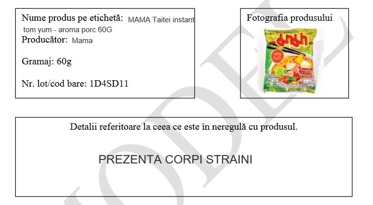 Potrivit atenționării, produsul prezintă corpi străini. VEZI atenționarea ANSVSA AICI.