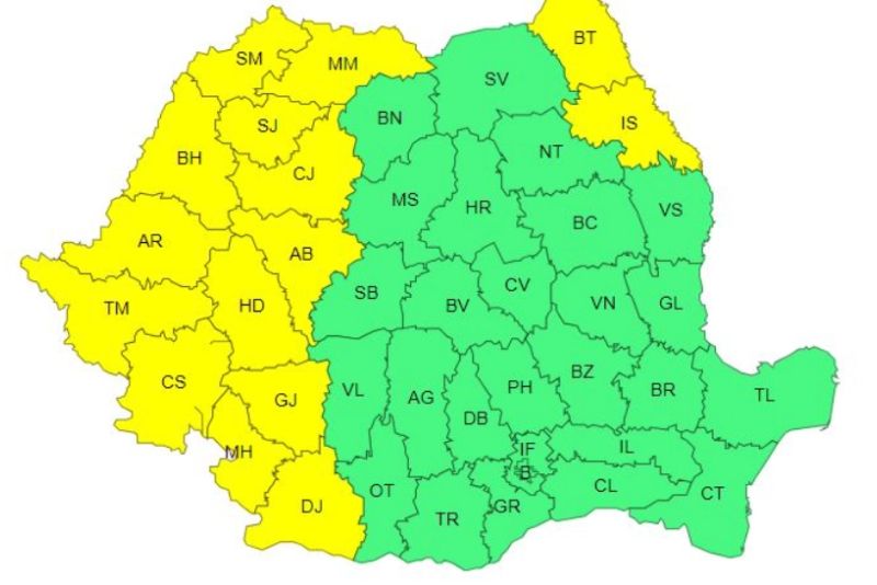 Afectate de Codul Galben sunt Banat, Crişana, Maramureş, vestul Transilvaniei, jumătatea de vest a Olteniei şi nordestul Moldovei.