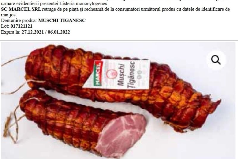 Producătorul local a inițiat retragerea de la comercializare a produselor Mușchi Țigănesc și Urechi Snacks, ca urmare a evidențierii bacteriei Listeria monocytogenes.