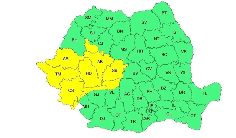 Avertizările meteo de tip cod galben sunt valabile inclusiv mâine