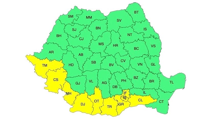 Vești bune de la ANM. Cel puțin pentru moment am scăpat de codurile roșii și portocalii de caniculă și furtuni. Dar, avem în vigoare un cod galben, valabil pentru sudul și vestul României.