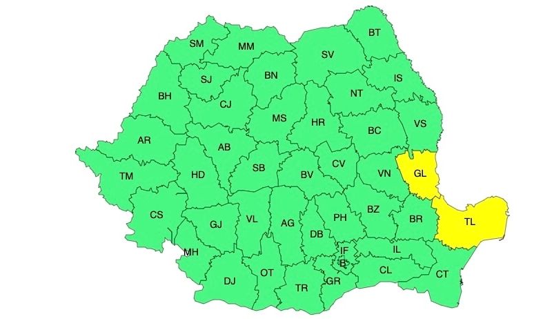 În intervalul menționat, în județele Galați și Tulcea vor fi averse de ploaie însemnate cantitativ, iar mai ales prin acumulare, cantitățile de apă vor fi de 15...25 l/mp și izolat de peste 30...40 l/mp.