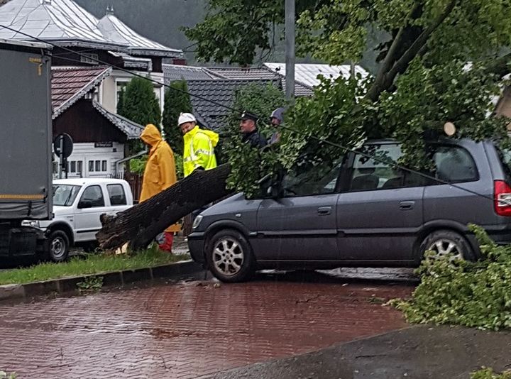 În municipiul Câmpulung Moldovenesc un copac a căzut peste un autoturism.