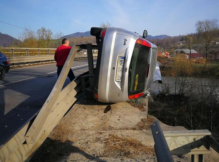 Un bărbat de 65 de ani, din municipiul Baia Mare, județul Maramureș, în timp ce conducea autoturismul marca Ford, având ca pasager pe locul din dreapta față pe soția acestuia, deplasându-se din direcția municipiului Suceava spre municipiul Vatra Dornei, la intrarea pe un pod, a adormit, a virat spre dreapta unde a intrat în coliziune cu un parapet metalic, respectiv cu un gard de protecție din fier, autoturismul rămânând imobilizat pe partea lateral-dreapta între parapetul metalic și balustrada podului.[caption id="attachment_88442" align="alignright" width="225"]
