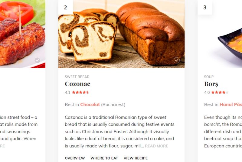 Sunt amintite, de asemenea, și cele mai populare feluri de mâncare: micii, cozonacul și borșul.
