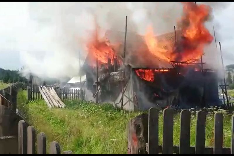 O casă a fost cuprinsă de flăcări în satul Prăleni, comuna Poiana Stampei, sâmbătă dimineața. Un bărbat și mama sa au primit îngrijiri medicale după ce au suferit atacuri de panică.