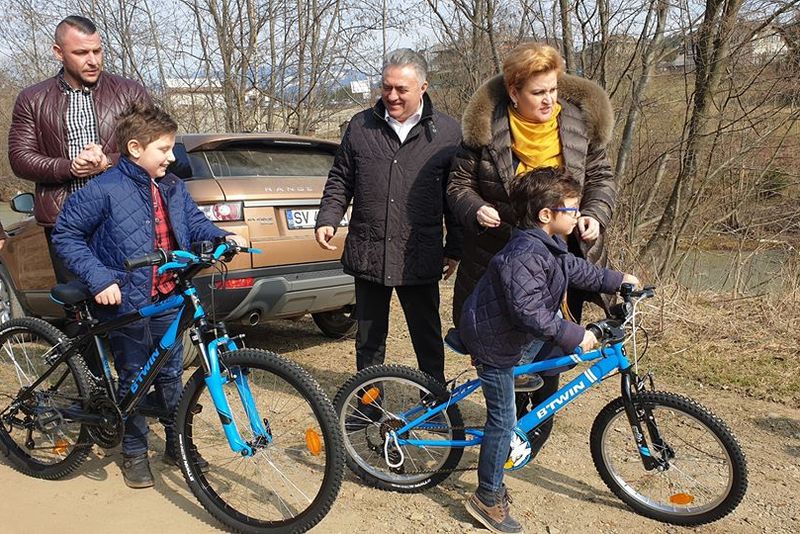 Cei doi copii de șase și nouă ani au fost numiți consilieri onorifici ai ministrului Mediului. Aceștia au primit două biciclete dar și rechizite pentru toți colegii lor de clasă.În cursul zilei de marți Grațiela Gavrilescu s-a aflat în județul Suceava unde a participat la lansarea noii linii de îmbuteliere a apelor minerale Dorna și Poiana Negri.