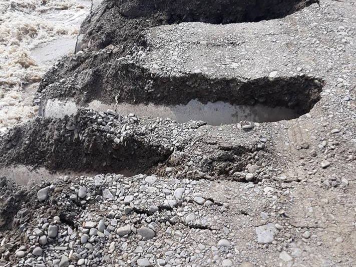 În urma ploilor abundente de duminică și a creșterii nivelului apelor râului Suceava, un tub din structura podului s-a deplasat. În momentul de fața se fac lucrări la fața locului pentru remedierea problemei.