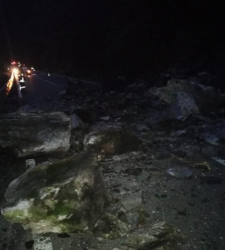 Circulația rutieră pe DN 17 B între Vatra Dornei și Crucea, blocată din cauza căderilor de pietre de pe versanți FOTO