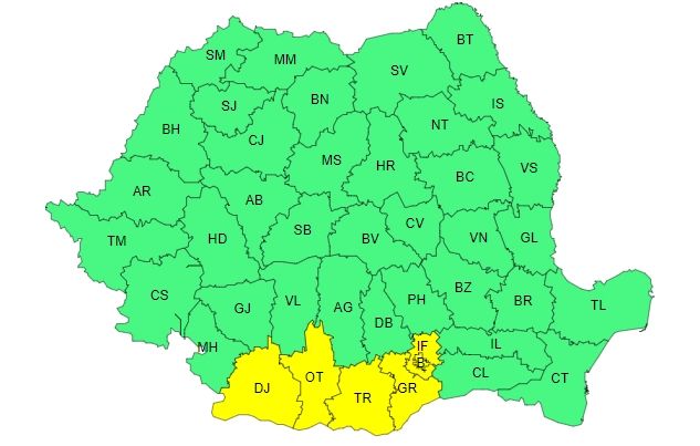 Vineri, între orele 09:00 și 21:00, în sudul Olteniei, precum și în sud-vestul și centrul Munteniei, se preconizează caniculă și disconfort termic. Indicele de temperatură-umezeală (ITU) va atinge pragul critic de 80 de unități. Conform ANM, temperaturile maxime vor varia între 35 și 37 de grade.