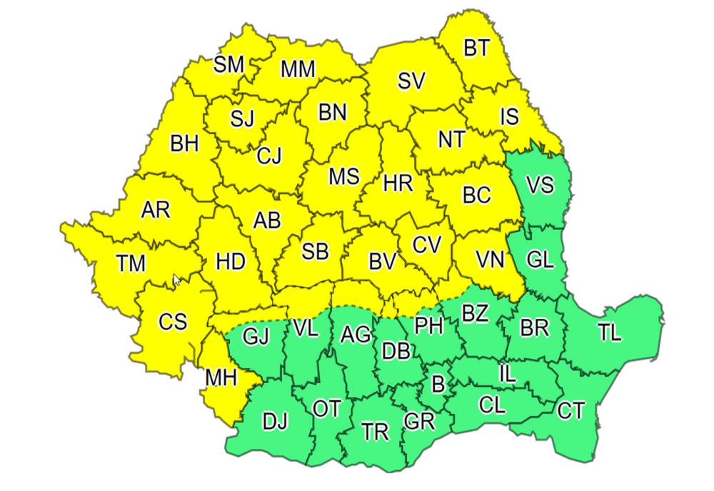 Administrația Națională de Meteorologie (ANM) a emis o avertizare COD GALBEN de instabililtate atmosferică accentuată, valabilă pentru 29 de județe din țară, în intervalul 02 iunie, ora 12, 02 iunie, ora 23.