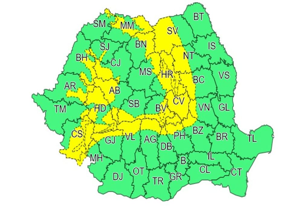 Local se vor acumula cantități de apă ce vor depăși 15…20 l/mp și pe arii restrânse 25 l/mp, îndeosebi în zona de munte.