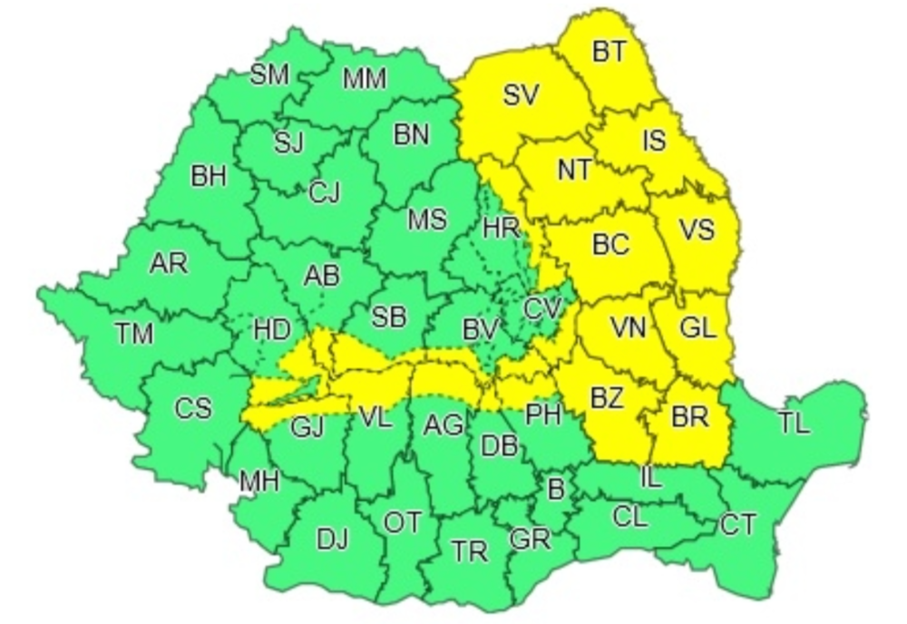 ATENȚIONARE METEOROLOGICĂ - COD GALBEN