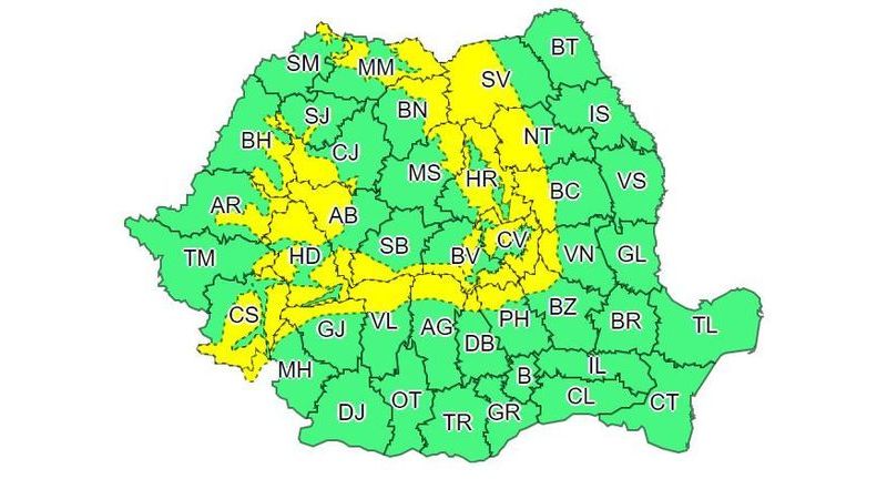 Cod galben de vânt și viscol pentru zona de munte a județului Suceava