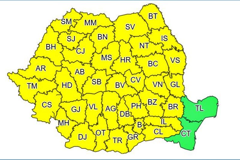 Avertizarea este valabilă de la ora 14.30 până la ora 15.30 și sunt vizate: Suceava, Fălticeni, Salcea, Cornu Luncii, Udești, Mălini, Șcheia, Bosanci, Baia, Păltinoasa, Râșca, Ipotești, Rădășeni, Moara, Horodniceni, Vulturești, Bogdănești, Stroiești, Valea Moldovei, Pârteștii de Jos, Drăgoiești, Berchisesti, Bunești, Ilișești, Fântâna Mare, Capu Câmpului, Ciprian Porumbescu.Potrivit meteorologilor se vor semnala grindină de dimensiuni mici și medii, vijelie puternică, frecvente descărcări electrice, averse ce vor cumula 30...35 l/mp.Județul Suceava se află sub incidența unui cod galben de ploi până la ora 22.00. Potrivit ANM, în Maramureș, vestul și nord-vestul Transilvaniei, Moldova, Dobrogea, nordul și estul Munteniei, nordul Olteniei, precum și în toate zonele de munte vor fi averse ce vor avea și caracter torențial, descărcări electrice, intensificări ale vântului, vijelii și căderi de grindină.
