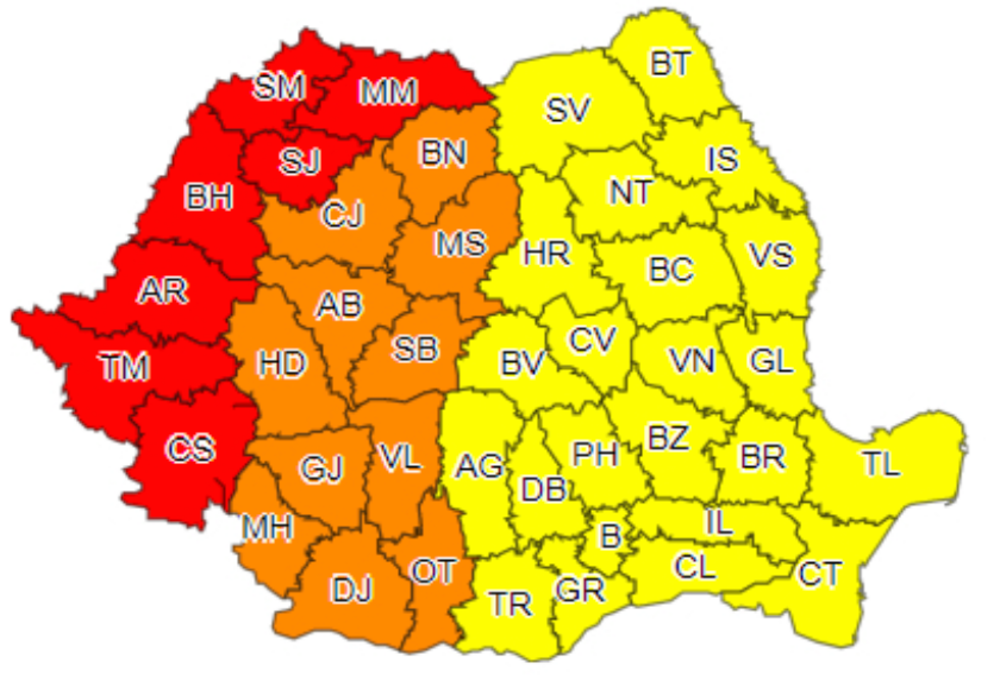 Atenționare de tip Cod roșu a fost emisă, astăzi, în jurul orei 10:30, și este valabilă în zilele de 24 și 25 iunie