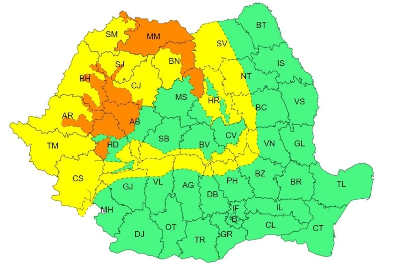 - 13:59 - ANM a emis un nou Cod galben de vreme rea. Ploi abundente în jumătate din țară, ninsori și viscol la munte -HARTA