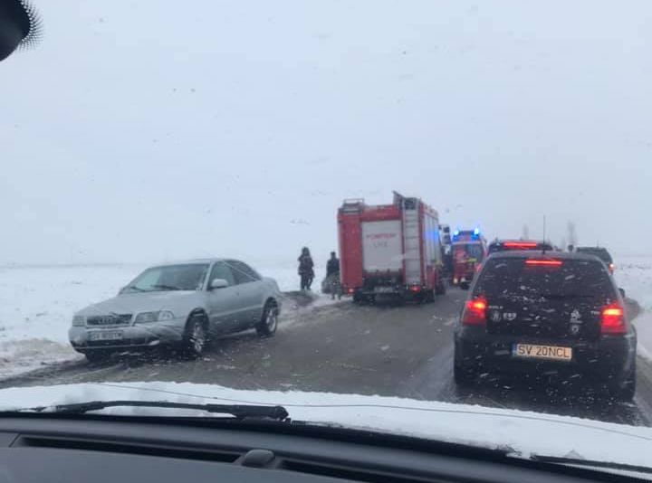 Accidentul a avut loc pe DN 17 A, în afara comunei Horodnic de Sus, luni după-amiază. Un tânăr de 21 de ani, din comuna Sucevița, s-a angajat în depășirea autoturismului condus de un bărbat de 28 de ani, din comuna Marginea, fără să se asigure că poate efectua manevra în condiții de siguranță, carosabilul fiind acoperit cu gheață și zăpadă.[caption id="attachment_84907" align="alignleft" width="225"]