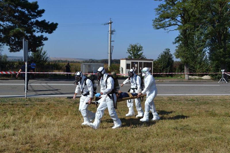 ma accidentului rezultând în total zece victime.Potrivit scenariului, autotrenul transporta capsule de iodură de potasiu (Monyiot-131), substanță radioactivă. S-a impus astfel extragerea de urgență a victimelor rezultate din accident, de către echipe specializate, cu costume de protecție contra radioactivității, și efectuarea măsurării nivelului de radiație în proximitatea autotrenului.