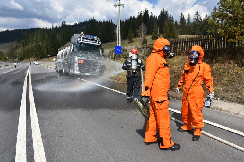 Exercițiu ISU Suceava. Accident cu victime multiple urmat de răsturnarea unei cisterne cu metanol VIDEO