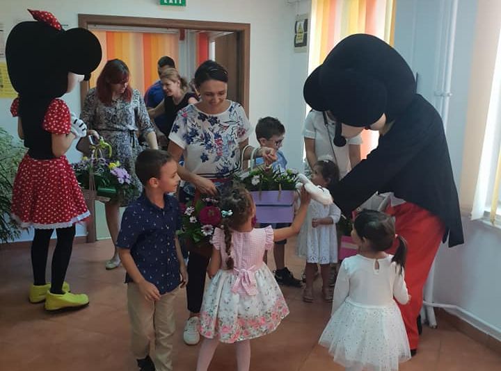 Coșarul Norocos și eroii din desene animate Minnie și Mickey Mouse au fost suprizele pregătite pentru copii și părinți la deschiderea anului școlar la Grădinița Obcini.