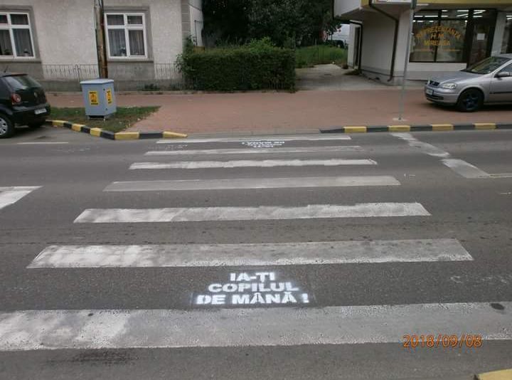 Mesajele de atenționare au apărut în ultimele zile pe trecerile de pietoni de lângă școlile din municipiul Suceava. Mesajele au fost realizate de Poliția Rutieră și Asociația AlecsGroup.Astfel de marcaje de prevenire au fost deja realizate la Școala Generală nr. 3, Școala Generală nr. 9, Colegiul Național „Petru Rareș” și Colegiul Național „Mihai Eminescu”.Pe trecerile de lângă cele două școli generale au fost inscripționate mesaje precum: „Ia-ți copilul de mână” sau „Coboară de pe bicicletă”. La licee mesajele sunt „Nu folosi telefonul” sau „Scoate căștile”.În perioada următoare proiectul va fi extins la nivelul întregului județ.