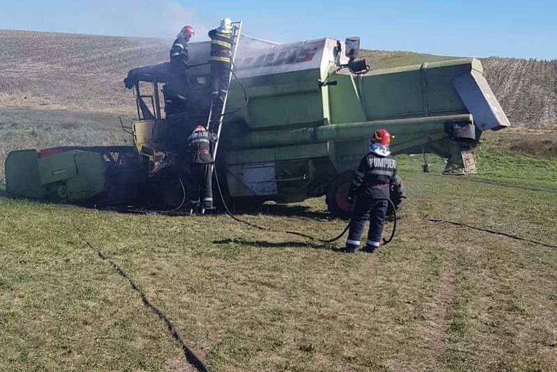 Incendiu la o combină agricolă pe raza satului Țelești, comuna Forăști.
