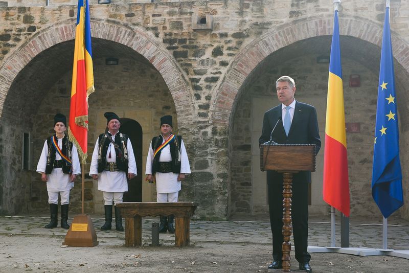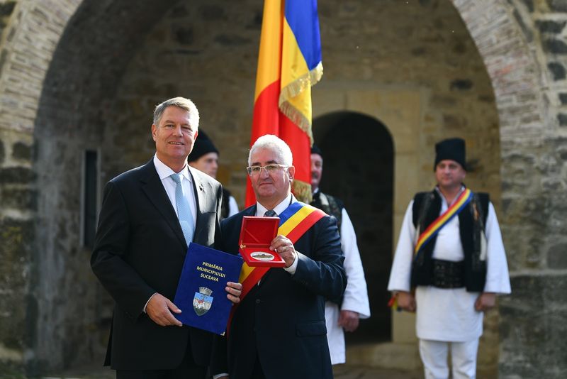 Ceremonia oferirii Drapelului Național Cetății de Scaun a Sucevei a avut loc miercuri. Anterior, președintele Klaus Iohannis a depus o coroană de flori la bustul unionistului Iancu Flondor. Tot miercuri, șeful statului a vizitat Muzeul de Istorie din Suceava.La ceremonia de la Cetatea de Scaun a Sucevei au participat reprezentanți ai administrației publice locale și județene. A fost prezent și primarul municipiului Alba Iulia, Mircea Hava.„Las în Cetatea de Scaun, ca simbol şi mesaj de unitate și de prezență a statului român în această străveche Cetate de Scaun acest drapel al României, un drapel național”, spus Klaus Iohannis.Șeful statului a făcut referire și la faptul că Cetatea de Scaun nu a fost niciodată cucerită.„Ne aflăm în locul care nu a fost niciodată cucerit, la Cetatea de Scaun. Este un simbol al capacităţii şi hotărârii românilor, oamenilor acestor locuri, care, timp de generaţii, au apărat ce au avut mai valoros, ce au avut mai important: libertatea, identitatea naţională şi drepturile lor de oameni liberi”, a mai spus Klaus Iohannis.Primarul Ion Lungu și președintele CJ Gheorghe Flutur i-au oferit președintelui medalii și distincții.