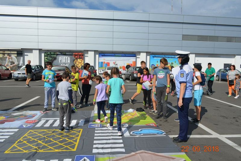 Peste 500 de copii și 300 de părinți au fost învățați reguli rutiere în cadrul unor acțiuni desfășurate în parcările magazinelor din Suceava.