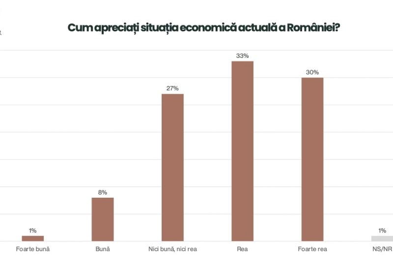 În strânsă dependență se află și răspunsul la întrebarea "Cum apreciați situația economică actuală a României?": într-un procent jenant, de doar 1%, românii spun că situația economică este "foarte bună".