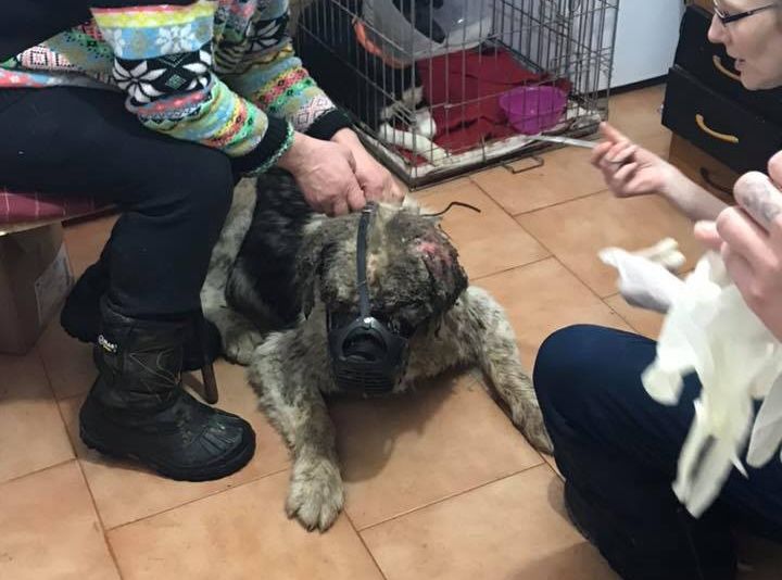 Animalul schilodit nu are stăpân. În cursul zilei de marți bietul animal a fost găsit cu ochii scoși și capul sfâșiat. Ciobănescul a ajuns în grija celor de la Asociația Casa lui Patrocle din Suceava, care încearcă să-i salveze viața. La început nu s-a știut ce s-a întâmplat cu acesta, dar între timp au apărut imagini cu chinul prin care a trecut câinele ciobănesc. "Am primit poze de la oamenii din Broșteni cu acest cățel, în care ne-au scris cum și cât de cuminte era și cum se juca cu copiii! Un film despre un caine nevinovat care într-un minut a fost schilodit pe viață, căruia i s-a mutilat tot capul și i s-au mâncat ochii! Fără apărare și fără să aibă vreo vină, săracul încearcă să dea din cap și să se apere, însă este încolțit de doi amstafi de lupta care au tras din el ca dintr-o prada!