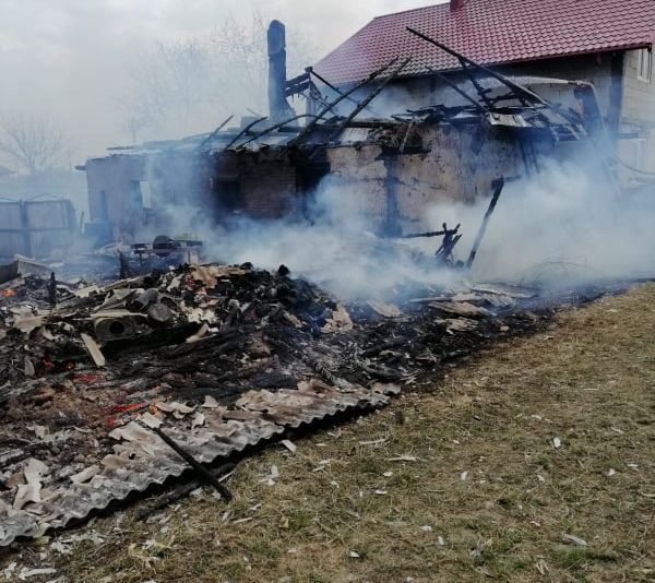 Incendiu generalizat la o gospodărie formată din casă de locuit, bucătărie de vară, depozit de furaje și un adopăst de animale, din localitatea Râșca, luni după-amiază.