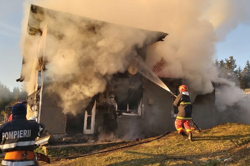 La sosirea echipajelor, incendiul se manifesta în interiorul casei de locuit (P+1), cu pericol de propagare la întreaga clădire.