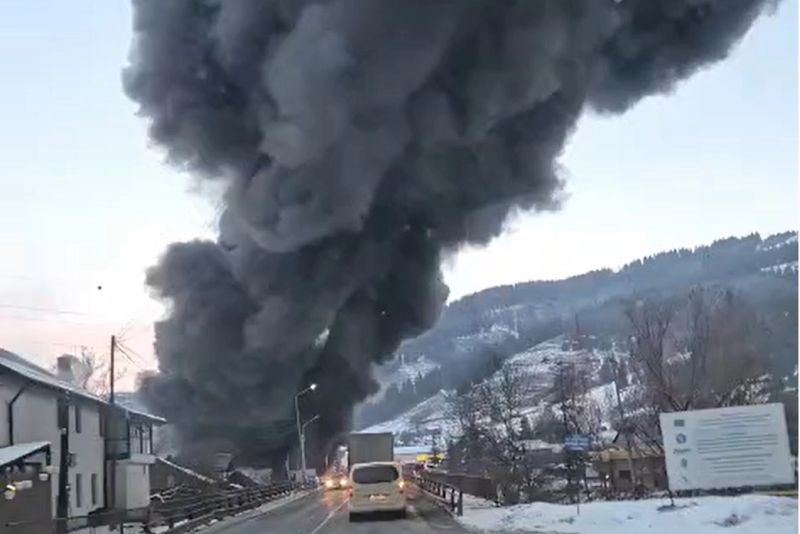 Pompierii militari intervin, marți dimineață, cu 7 autospeciale de stingere la un incendiu puternic izbucnit la un depozit de cauciucuri din localitatea suceveană Argestru. Flăcările și fumul sunt vizibile de la kilometri distanță. Populația a fost avertizată prin mesaj Ro-Alert.