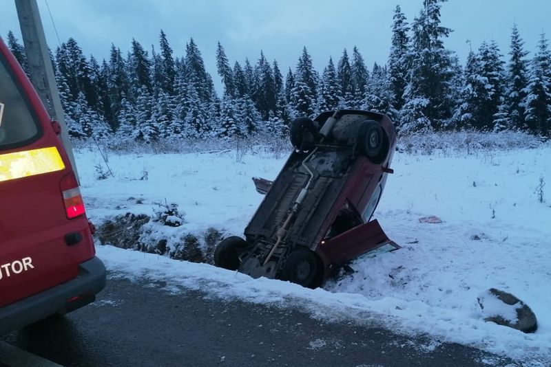 Mașină răsturnată în șanț, la Poiana Stampei FOTO