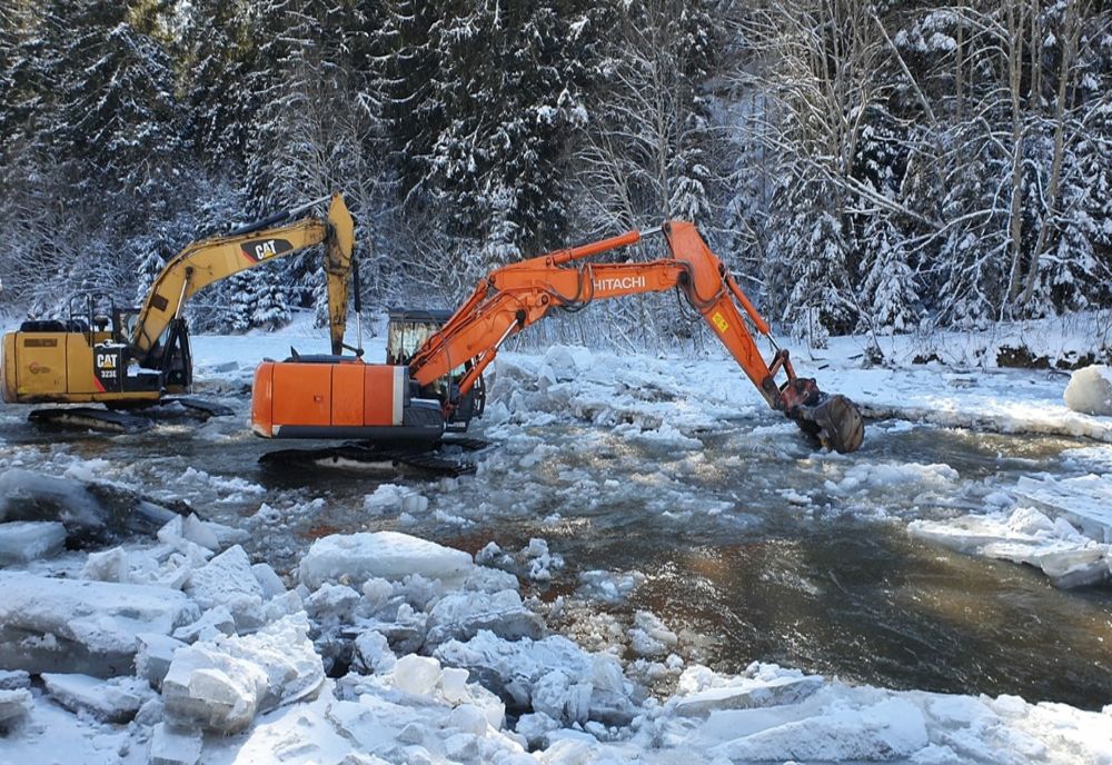 Astfel, în zona unde era formată o aglomerare de ghețuri de aproximativ 400 de metri lungime (localitatea Valea Stânei), se lucrează cu ajutorul unor utilaje și se întreține șenalul creat, pentru a favoriza scurgerea apelor ieșite din albie.