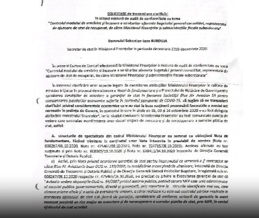 Drept urmare, jurnalista a facut publica solicitarea adresata lui Sebastian Burduja de catre CC privind transmiterea unor calrificari pe marginea acestui subiect: