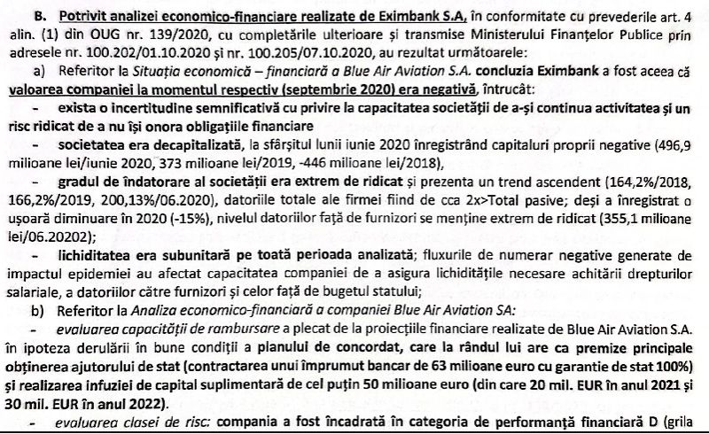 "În august 2020, Comisia a aprobat două măsuri în favoarea Blue Air, și anume:
