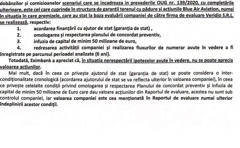 România s-a angajat să se asigure că garanția publică aferentă împrumutului pentru salvare va înceta după șase luni sau că va comunica Comisiei fie un plan de lichidare, fie un plan cuprinzător de restructurare a Blue Air în vederea evaluării ajutorului de stat.