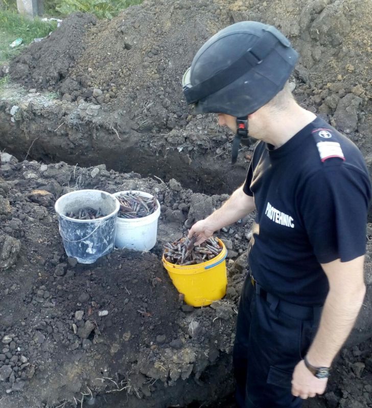 Muniția de război a fost descoperită întâmplător de un localnic de 68 de ani, joi dimineață. Bărbatul a sunat imediat la 112.La fața locului au ajuns polițiști, dar și un echipaj de pirotehniști. Pe sol, pe o suprafață de aproximativ 50 mp, a fost identificat un proiectil exploziv, calibru 122 mm, 139 cartușe infanterie calibru 7,62mm, 29 cartușe infanterie calibru 7,92mm, 30 tuburi de cartușe infanterie calibru 7,62 mm, un tub cartuș semnalizare, un cartuș infanterie calibru 9mm, o armă nefuncțională din Primul Război Mondial.Arma și elementele de muniție au fost ridicate și transportate în vederea depozitării și distrugerii de către echipa pirotehnică din cadrul Inspectoratului pentru Situații de Urgență „Bucovina” al județului Suceava.