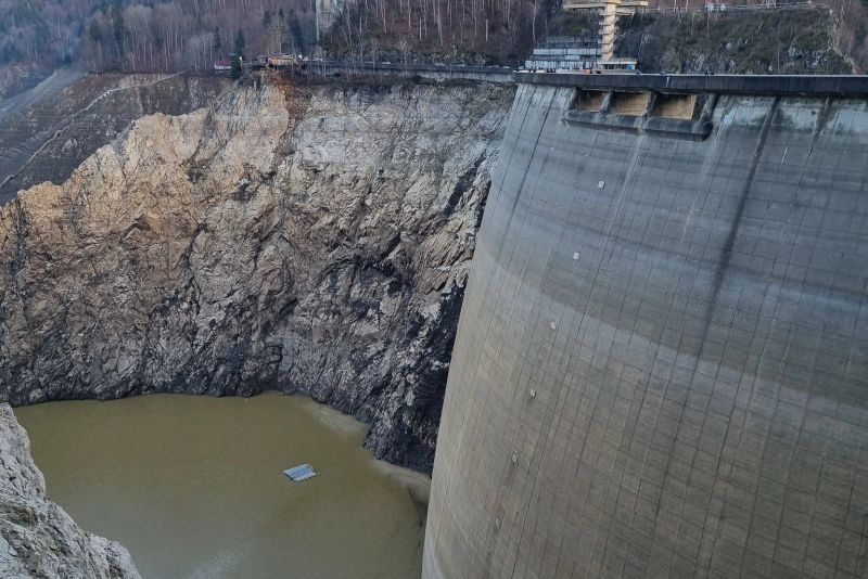 Noi imagini cu lacul Vidraru aproape gol. O serie de fotografii postate pe rețelele de socializare prezintă un peisaj de o frumusețe stranie, iar indicatorul de adâncime arată clar că nivelul apei a scăzut cu 100 de metri față de cota normală de umplere, potrivit realitatea.net.
