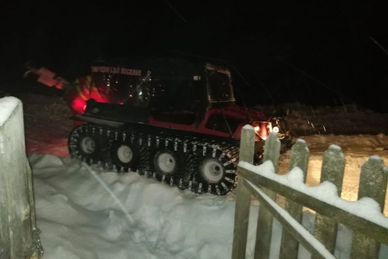 Pompierii suceveni au intervenit joi seară în satul Cununschi, comuna Brodina, cu o șenilată pentru a aduce o femeie cu probleme de sănătate la ambulanța SMURD.