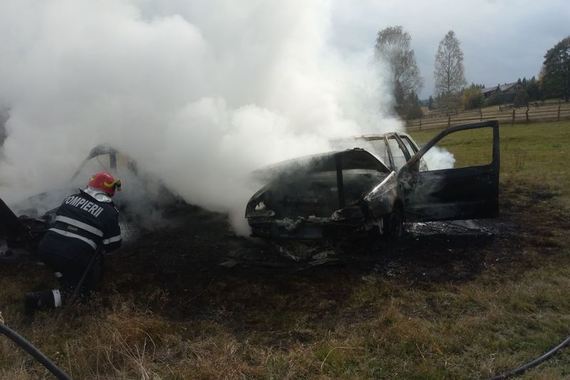 La sosirea echipajelor, ardea în totalitate un autoturism, cu pericol de propagare la o casă de locuit aflată în apropiere.